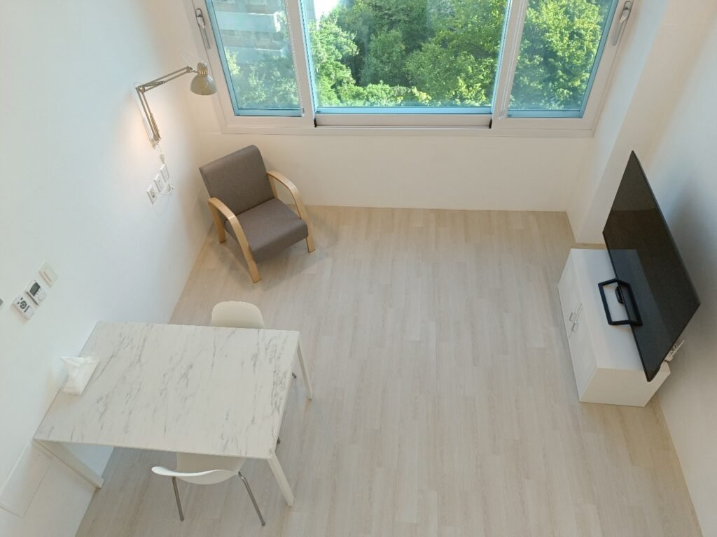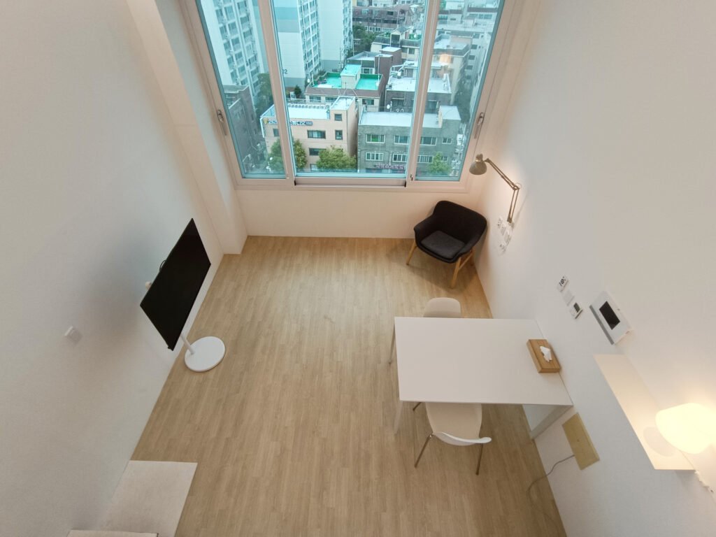Bright Urban View: Large windows provide a pleasant view of the Gimpo Airport area while filling the room with natural light.